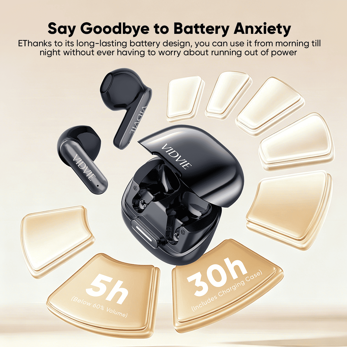 Battery: 25mAh*2 (earphones), 380mAh (Charging case)