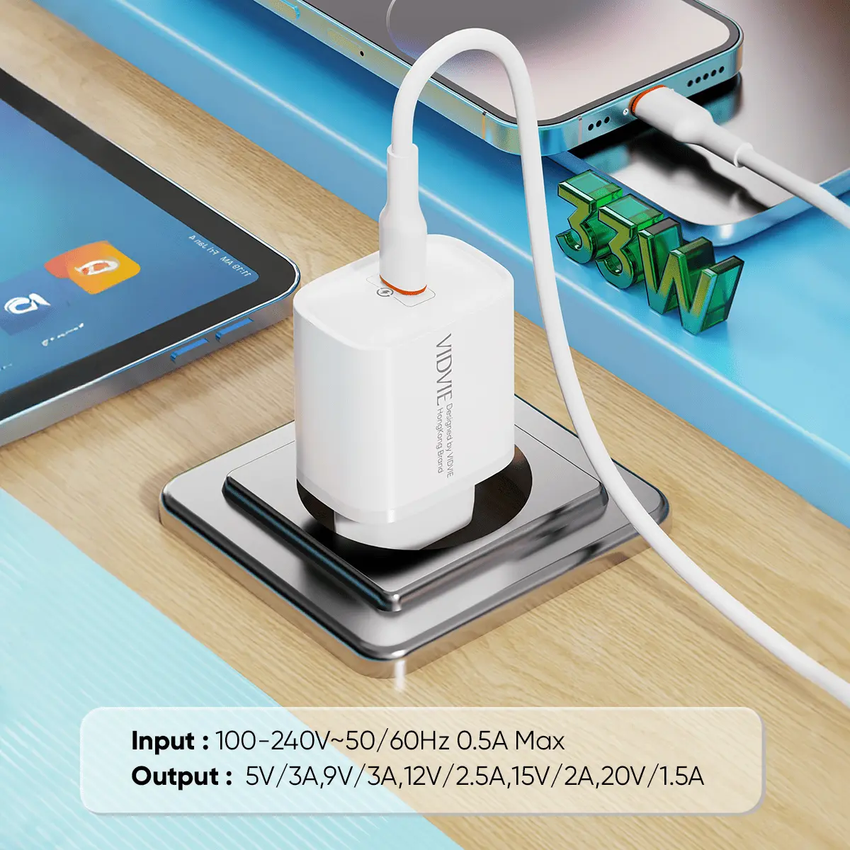 Output:5V/3A,9V/3A,12V/2.5A,15V/2A,20V/1.5A 30W Max