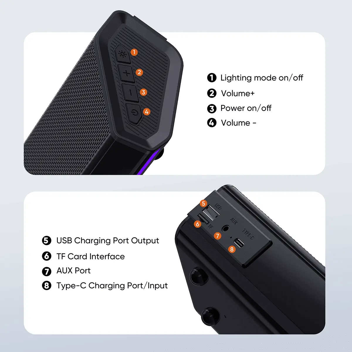 *Support Bluetooth, AUX, USB flash and TF card connection.